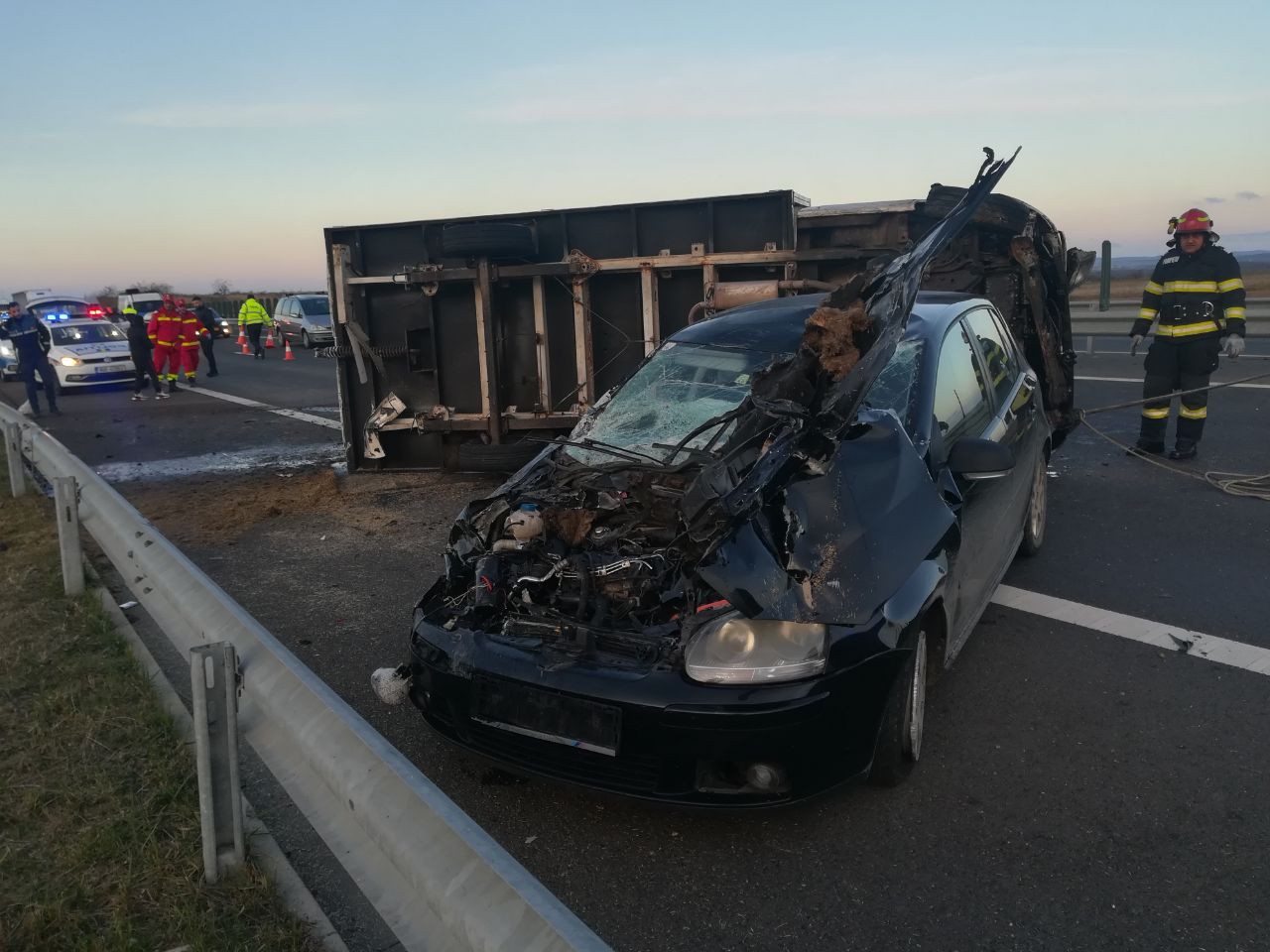 În dimineața zilei de astăzi, 26 noiembrie 2023, la ora 07:15, echipajele de intervenție au fost chemate pentru gestionarea consecințelor unui accident rutier grav petrecut pe autostrada A1, la km 431.