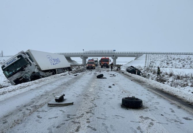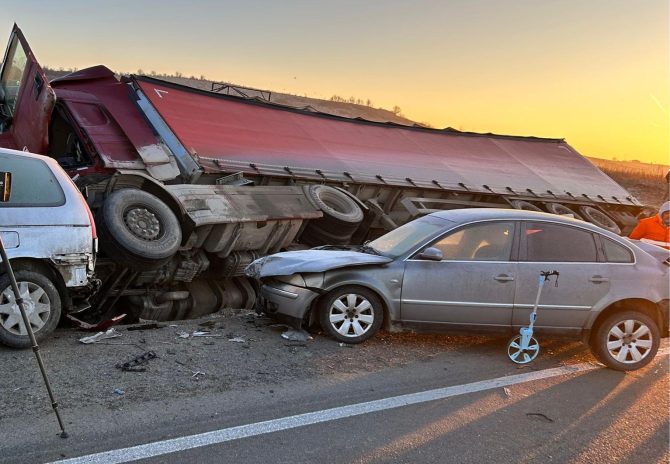 Accident mortal pe Centura Lugojului, marți dimineața: un șofer de TIR de 56 de ani a murit după ce camionul s-a răsturnat și a lovit două mașini parcate. Pompierii și poliția au intervenit de urgență.