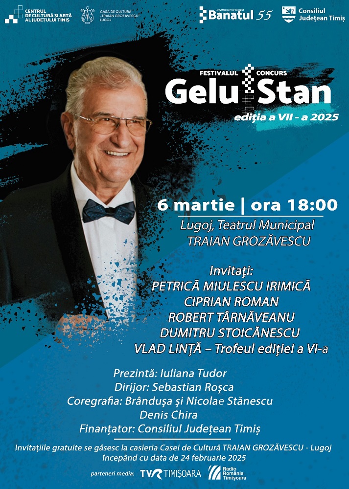 17 tineri, finaliști ai Festivalului-Concurs „Gelu Stan” 2025, se pregătesc să urce pe scena din Lugoj. Evenimentul de gală va avea loc pe 6 martie la Teatrul Municipal „Traian Grozăvescu”, cu acompaniamentul Orchestrei Ansamblului Profesionist Banatul.