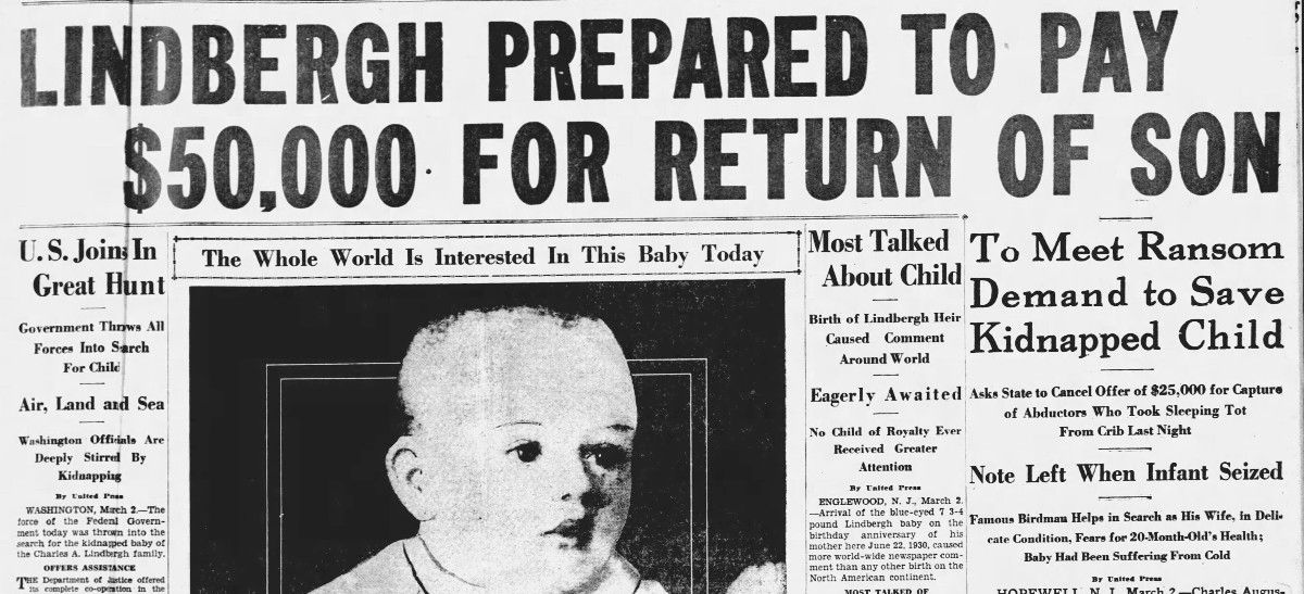 În seara zilei de 1 martie, în jurul orei 22:00, Betty Gow, dădaca copilului, a descoperit că patul acestuia era gol. Charles Lindbergh, împreună cu soția sa Anne Morrow Lindbergh, au început imediat să-l caute. Pe pervazul ferestrei din camera copilului a fost găsită o notă de răscumpărare scrisă cu greșeli gramaticale, în care răpitorii cereau 50.000 de dolari pentru eliberarea băiatului.