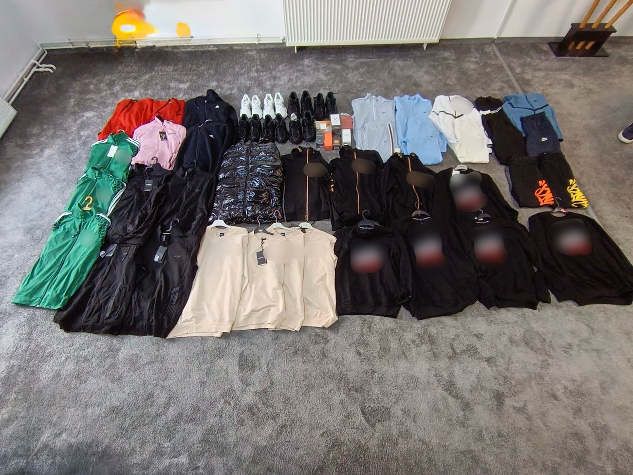 Potrivit comunicatului oficial, aceștia aveau la vânzare „diverse produse purtând inscripțiile sau denumirile unor mărci consacrate”.