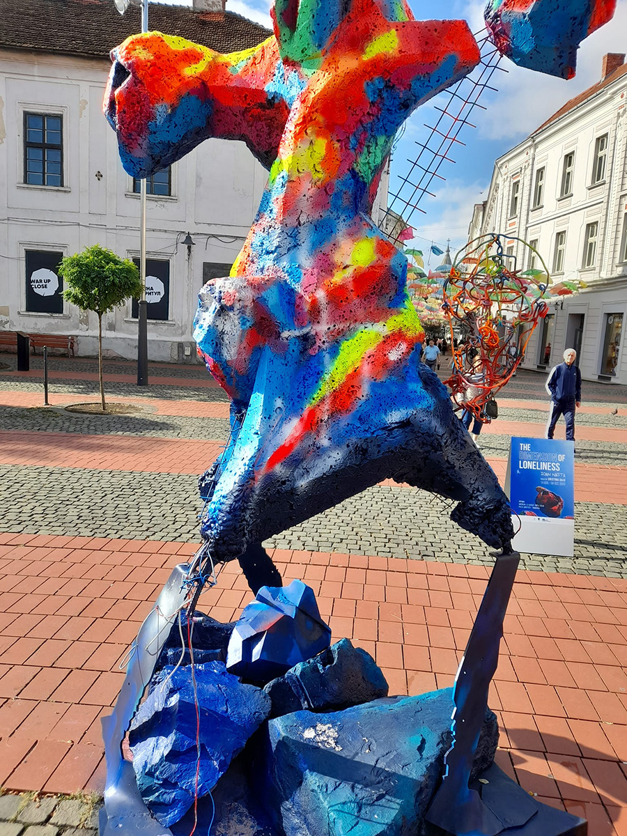 Ai o statuie în Libertății, în Timișoara. O instalație. O chestie. (A lui Ioan Nasta). Uneori, și etichetele astea sunt strâmte, și nu văd de ce ne-am opri la una sau alta. Așadar, ai ceva. Un ceva albastru – majoritar. Trebuie să accepți că, și dacă ai chef să-ți dai cu părerea, nu o să ajungi brusc critic de artă, fără o tarla luuuungă de muzee bune mâncate pe pită. Așadar, de simți o trăire cum că „dar ce a vrut să spună artistul cu asta” sau gen „seamănă cu”, fugi repede și apucă-te de plivit pe undeva. Nu e de tine acel ceva.