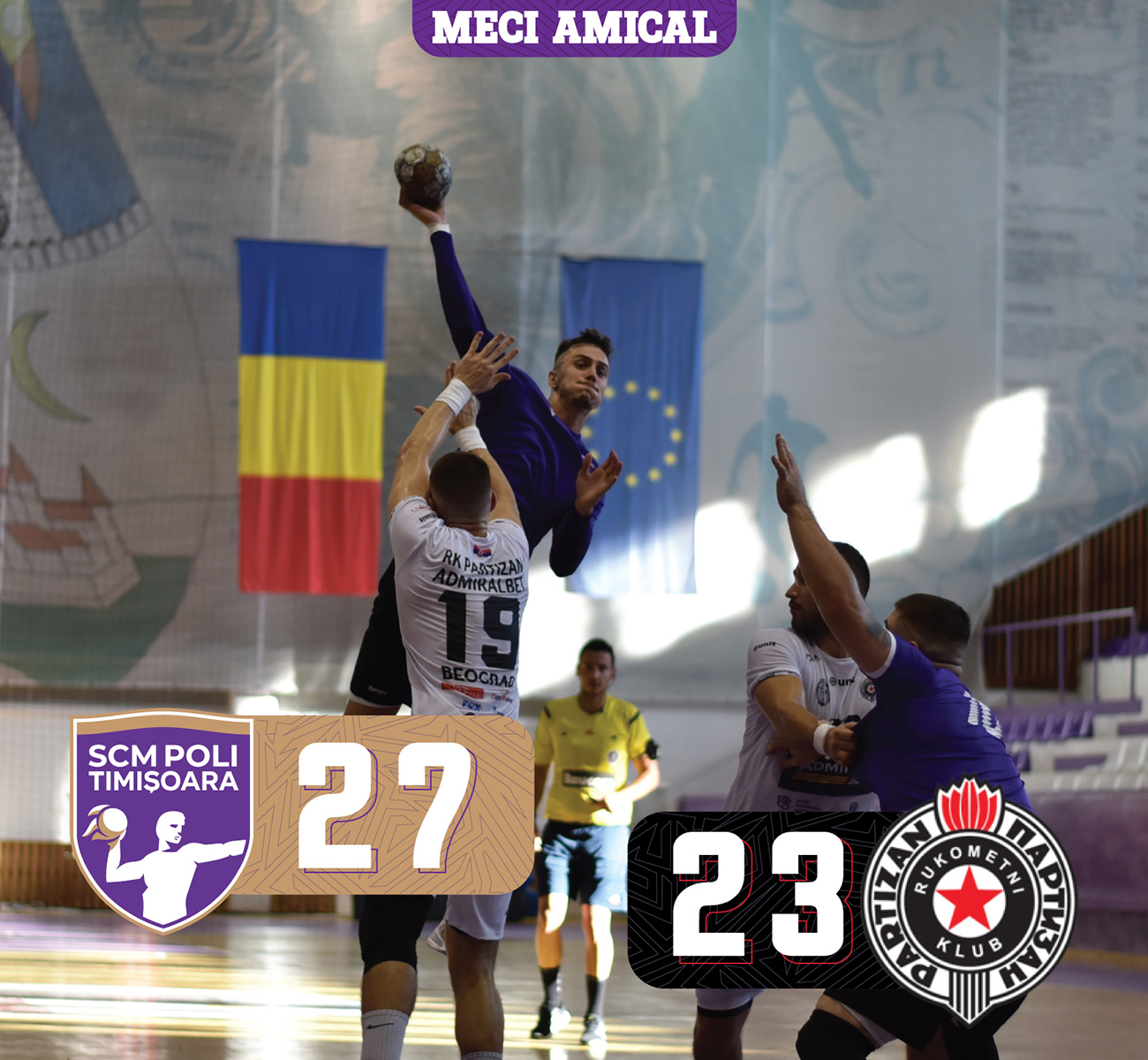 SCM Politehnica Timișoara a câștigat meciul amical, disputat, ieri, împotriva celor de la Partizan Belgrad, scor 27-23.