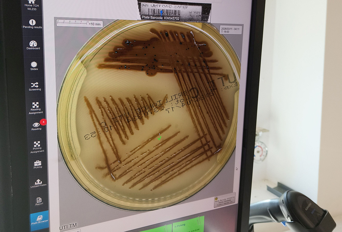 Dar mi se arată, nu de-a valma, ci cu răbdare, la microscop, ce a crescut, și pozez, și apoi vorbim despre cele mai aparte ce au fost găsite acolo, gen Candida auris, forte contagioasă – dar aici totul e gândit, contabilizat, pus în găoace de sticlă și plastic și ținut ferit, să poată fi prețăluit fără a face rău. Urmăresc eprubetele, în drumul lor mecanizat, ascult uruitul agregatelor, trecem, în calea noastră, ce implică mai multe etaje și multe cotloane ce nici nu știam că există, în Județean, pe la oameni ce lucrează cu bacterii, cu viruși, cu tot ce e janghină mică și te poate omorî sau da peste cap, mi se spune de toate felurile de analize, din toate felurile de probe, chiar și de o carte faină pe care au scos-o timișorenii pe marginea analizelor de urină, ajungem și la toxicologie, vorbim despre screening și confirmări de droguri, ridic o problemă cu o intoxicație cu tisă a cuiva care a vrut să se sinucidă, prezentată de anestezistul Iuliu Torje de curând, gândim, mi se explică variante – parcă suntem în partea aseptică a unui film cu detectivi.