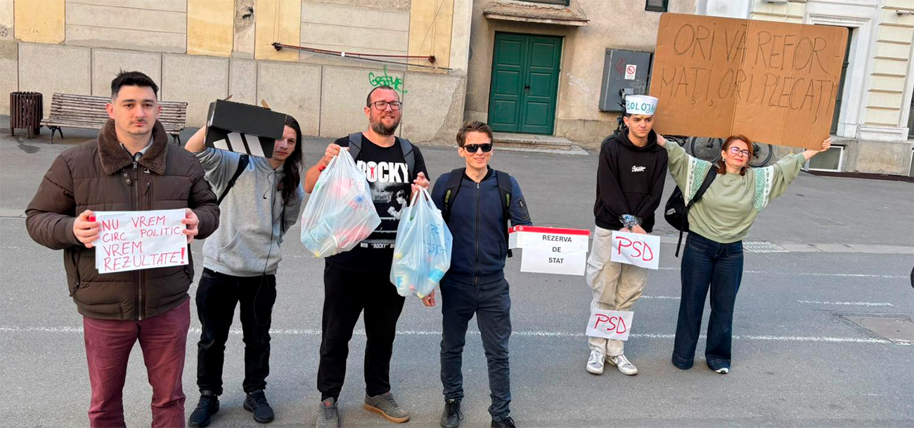 Protest cu cutii de pantofi și PET-uri la conferința PSD din Timișoara: „Ori vă reformați, ori plecați!”