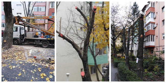 Un cititor TION acuză muncitorii primăriei că și-au bătut joc de mai mulți copaci aflați într-o zonă în care nu demult a fost amenajată o parcare. Au tăiat crengile și au dat cu vopsea roșie pe cioturile afectate, iar în 2 decembrie se întorc „să termine treaba” la alți arbori toaletați în primăvară.