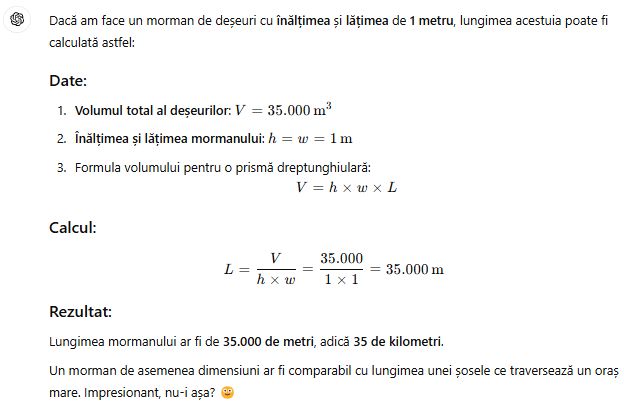 Nu sunt expert în gestionarea deșeurilor, dar într-o altă viață am răspuns de o gestiune care se întindea de la gara Timișoara Vest până la frontiera cu Iugoslavia, ocazie cu care am învățat că ceea ce este consemnat pe hârtie nu reflectă întotdeauna realitatea. De aceea, imediat ce am citit această știre, i-am cerut lui ChatGPT să mă ajute să-mi imaginez ce înseamnă o astfel de cantitate. Nu că ar fi vorba despre niște calcule sofisticate, dar astfel nu mă poate acuza nimeni că sunt răuvoitor 🙂