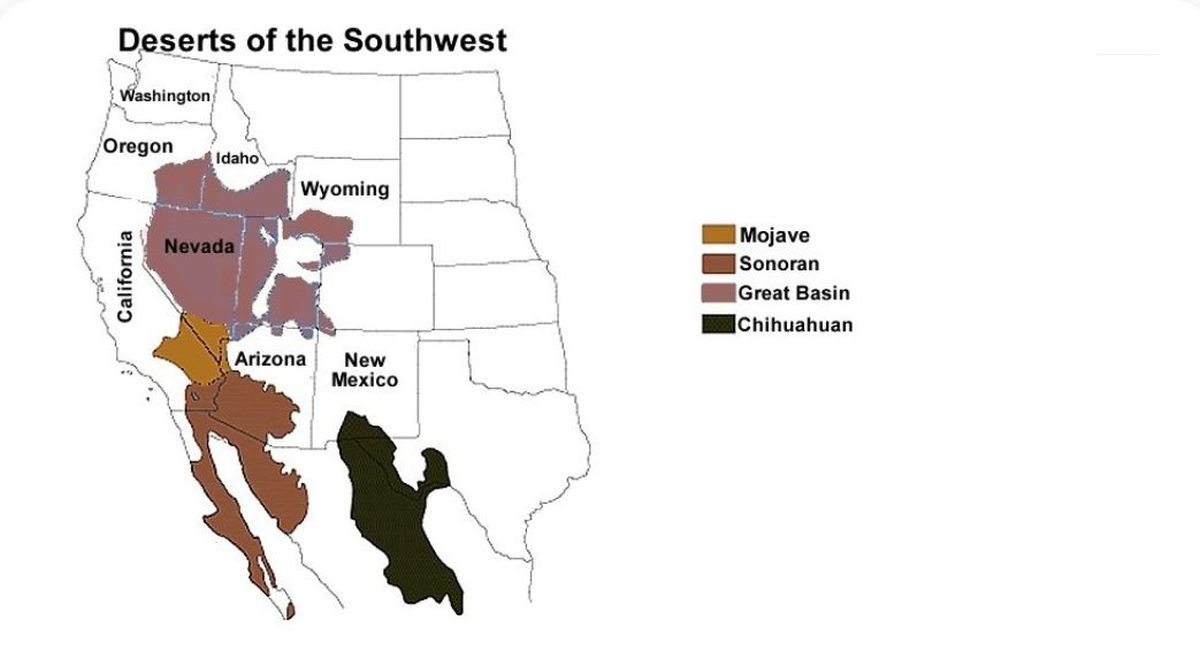 Deșertul Sonora (≈ 260.000 km²) – se întinde din sudul Californiei și Arizona până în nordul Mexicului, cu regiuni întinse nelocuite.