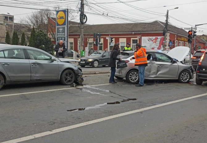 FOTO: Accident rutier în Timișoara, trei mașini implicate, la intersecția Barnuțiu – Samuel Micu