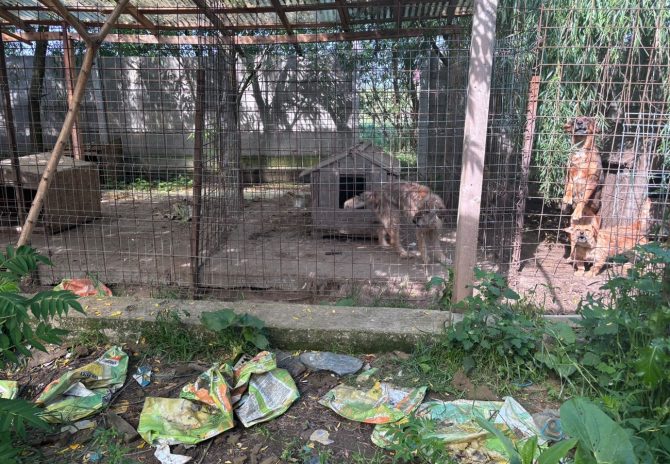 Pisici și câini ținuți în mizerie într-o fostă firmă din Săcălaz. Poliția a intervenit