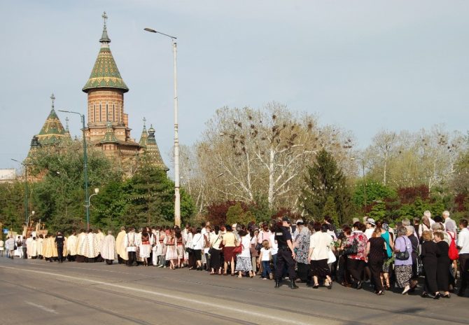 Restricții de trafic în Timișoara sâmbătă: Traseul pelerinajului de Florii și rutele afectate